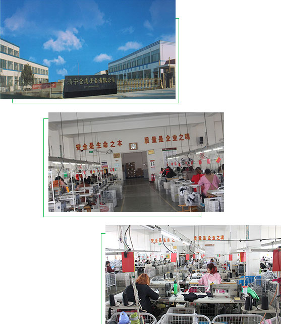 工廠始建于1999年9月,總投資8500萬人民幣,占地面積120畝,車間建筑面積53000平方米,倉庫8500平方米,現(xiàn)有員工960名,各種機器設(shè)備985臺,15臺160頭刺繡機,3臺多功能電腦車,年生產(chǎn)主導(dǎo)產(chǎn)品手套360萬雙,是中國海關(guān)AA 類企業(yè),是嘉祥縣手套協(xié)會會長單位。